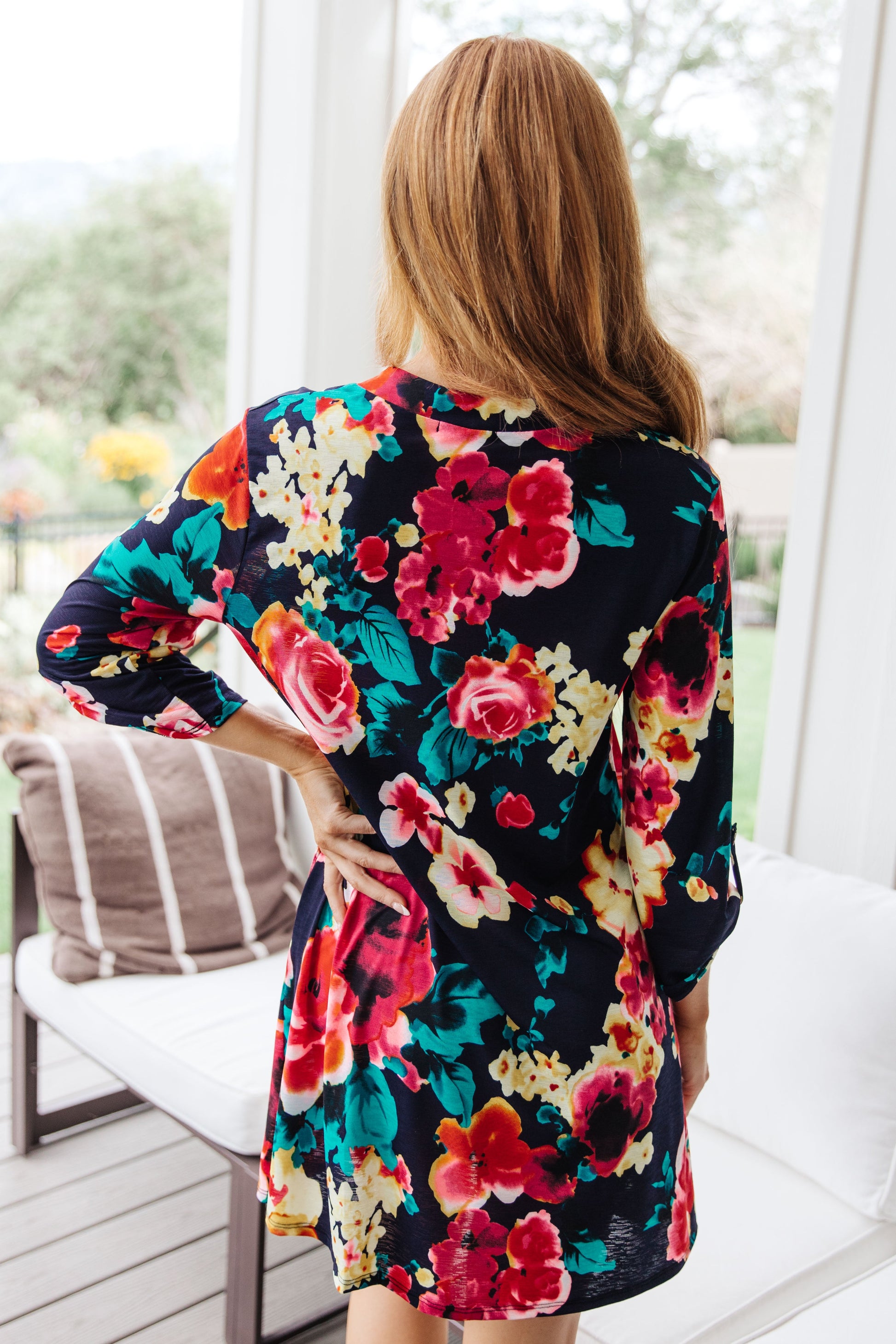 Experience luxury and allure in the Moonlit Garden Floral Midi Dress. Crafted from lightweight bulgari fabric with a v-neckline, pockets, and 3/4 length sleeves, this dress will take you from day to night in effortless style. Follow your fashion sense to the bold floral print that will make you feel confident and beautiful. So, let your style bloom and look gorgeous!