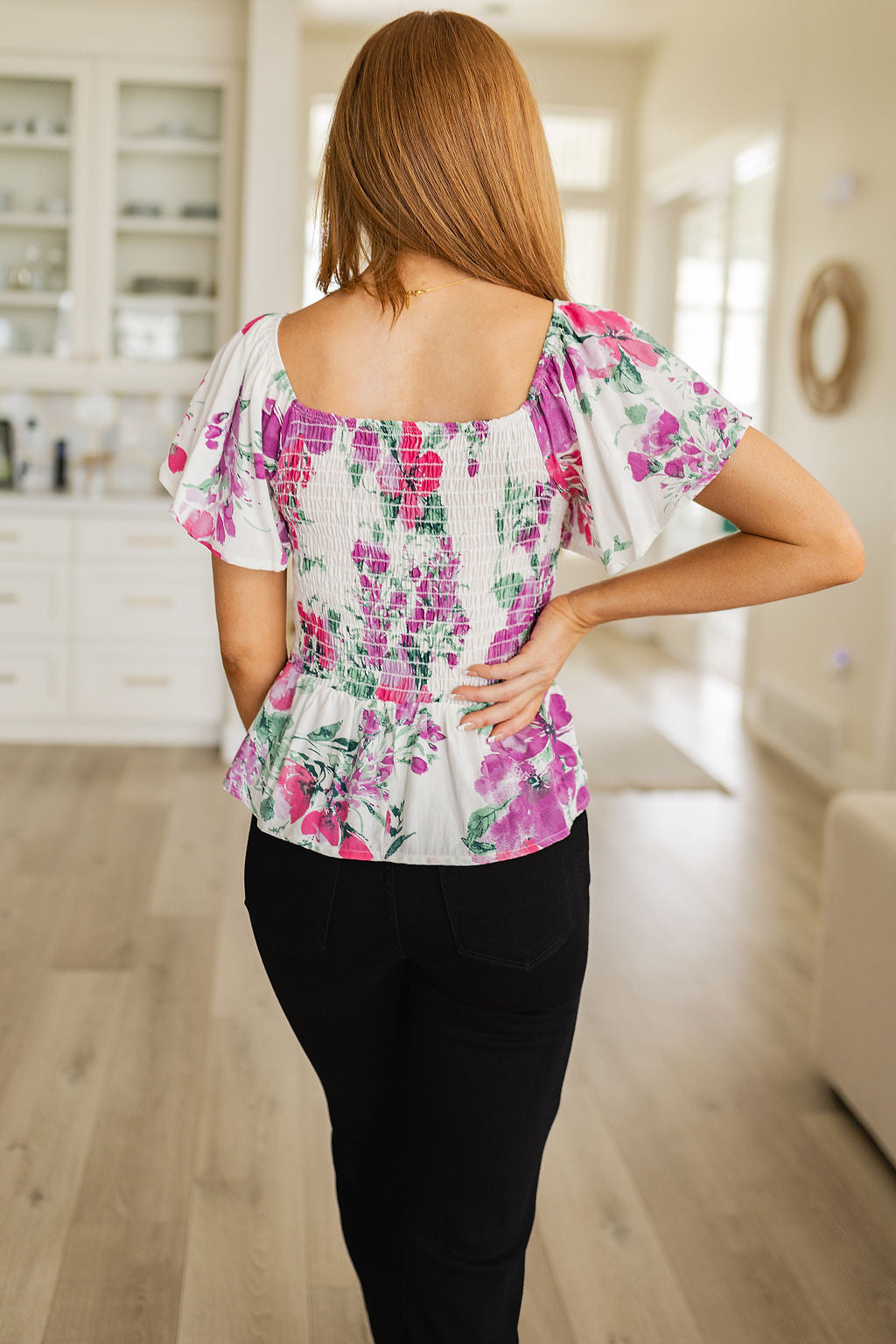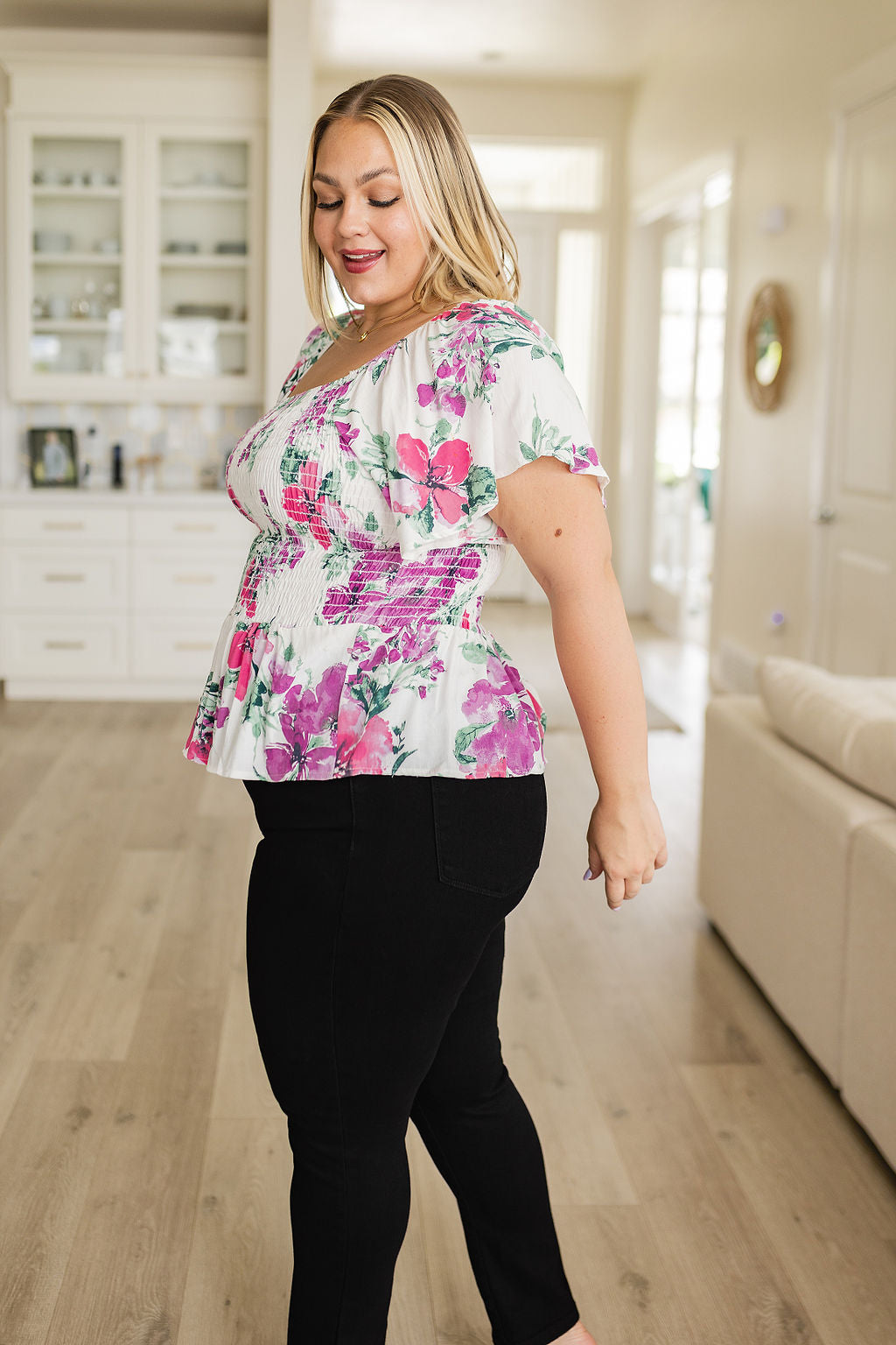 Step into the season with graceful sophistication in this Oh So Simple Floral Blouse. Crafted with a smocked elastic bodice and square neckline, the chic floral pattern and flattering peplum make this blouse a wardrobe staple. Feel your best and make them take notice. So simple, so chic!